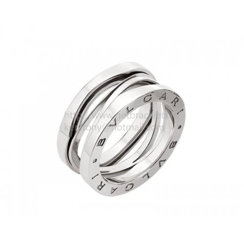 Prsten Bvlgari B.zero1 Legend s geometrickým 3-pásmovým vzorem z bílého zlata.