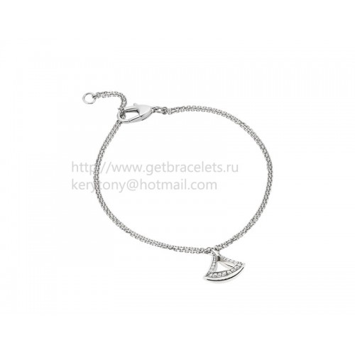 Náramek Bvlgari DIVAS Dream z bílého zlata s prolamovanými detaily a přívěskem z bílého zlata osazeným diamanty Pave.