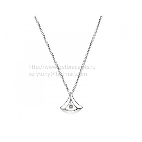 Náhrdelník Bvlgari Divas Dream z bílého zlata s prolamovaným vzorem a přívěskem z bílého zlata s centrálním diamantem.