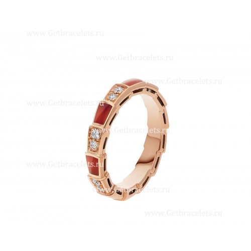 Zlatý prsten Bvlgari Small Serpenti Viper z 18k růžového zlata s karneolovými prvky a dlážděnými diamanty.