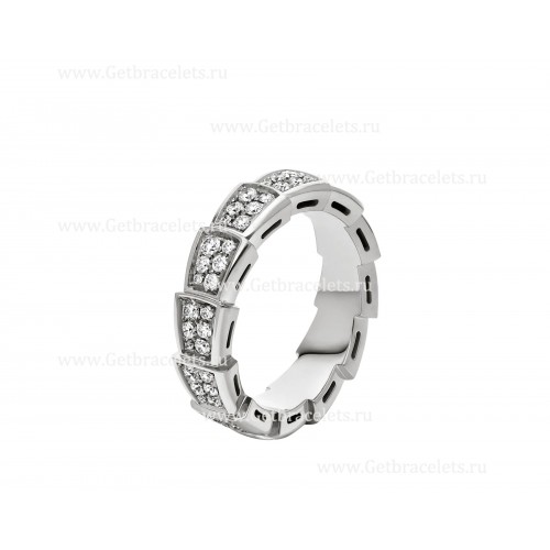 Snubní prsten Bvlgari Medium Serpenti Viper z 18karátového bílého zlata s diamanty po celé délce.