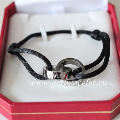 Náramek Cartier s dvojitým prstenem a láskou z bílého zlata a černého lana