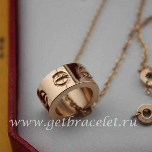 Tento náhrdelník se skládá z prstenu Cartier LOVE a řetízků z růžového zlata, vyřezaných ve tvaru šroubů Cartier a LOGA Cartier