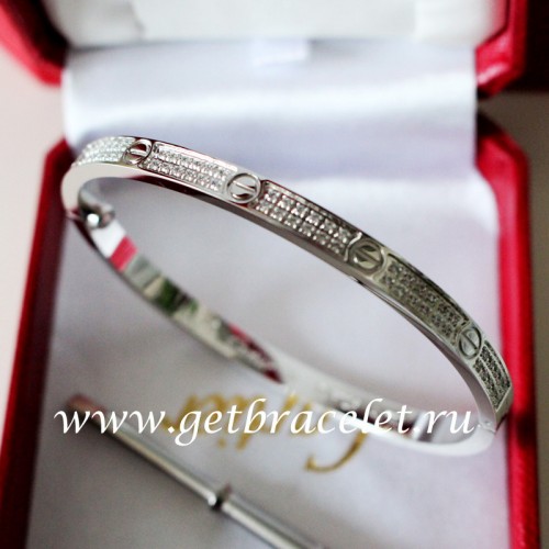Náramek Cartier Love, velikost SM, bílé zlato s diamanty