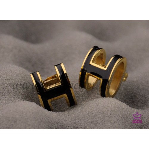 Náušnice Hermes Pop H černé ze žlutého zlata