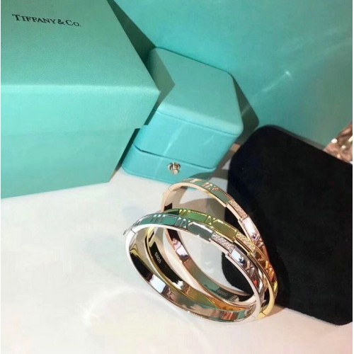 Dámský uzavřený náramek Tiffany Atlas s panty, stříbrný růžový/žlutý zlatý, krystaly