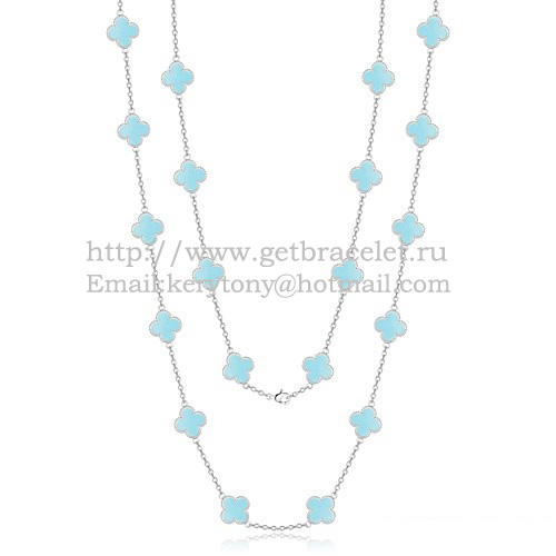 Náhrdelník Van Cleef Arpels Alhambra z bílého zlata s 20 motivy a tyrkysovou perletí