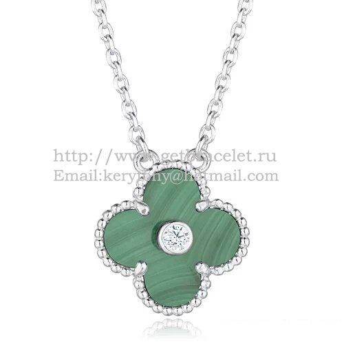 Přívěsek Van Cleef Arpels Alhambra z bílého zlata s malachitem a perletí, kulaté diamanty.