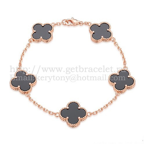 • Náramek Van Cleef Arpels Alhambra s 5 motivy, růžové zlato s černým achátem a perletí