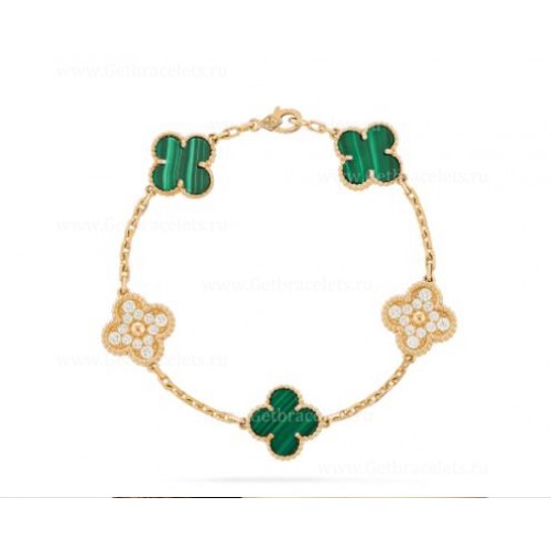 Náramek Van Cleef Arpels Alhambra s 5 motivy, diamanty a malachitem