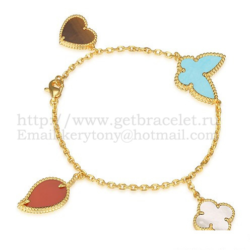 Náramek Van Cleef Arpels Lucky Alhambra se 4 motivy ze žlutého zlata s kombinací kamenů 006