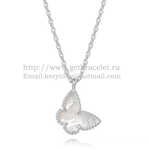 Náhrdelník Van Cleef Arpels Lucky Alhambra Butterfly z bílého zlata s bílou perletí.