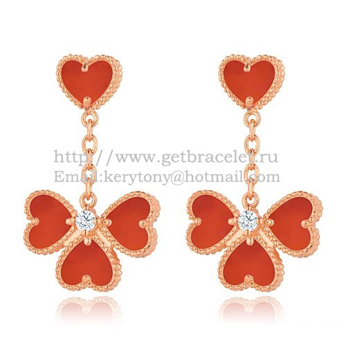 Náušnice Van Cleef Arpels Sweet Alhambra Effeuillage z růžového zlata s karneolem a perletí.