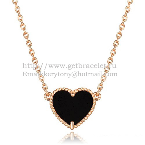 Přívěsek Van Cleef Arpels Sweet Alhambra ve tvaru srdce z růžového zlata s černým onyxem a perletí.