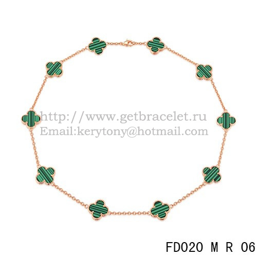 Náhrdelník Van Cleef Arpels Alhambra z růžového zlata, 10 motivů, malachit, perleť, 45 cm