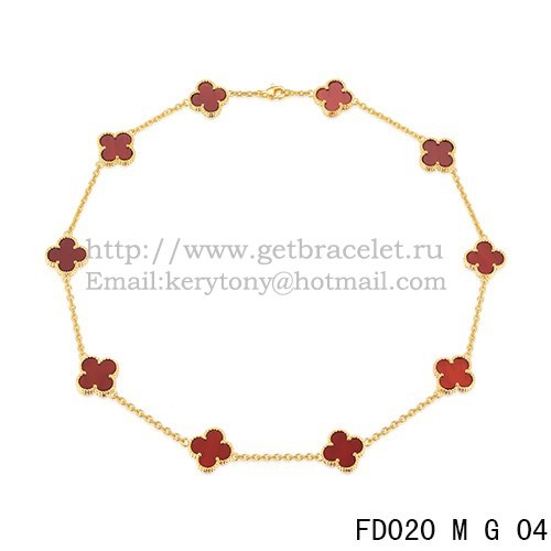 Náhrdelník Van Cleef Arpels Alhambra ze žlutého zlata s 10 motivy a karneolem, perleť 45 cm