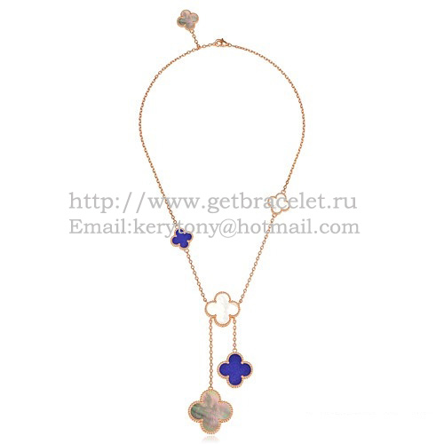 Náhrdelník Van Cleef Arpels Magic Alhambra z růžového zlata se 6 motivy a šedobílým lapisem a perletí