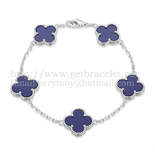 Náramek Van Cleef Arpels Alhambra s 5 motivy z bílého zlata s lapisem a perletí