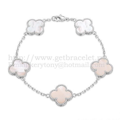 Náramek Van Cleef Arpels Alhambra s 5 motivy z bílého zlata s bílou perletí