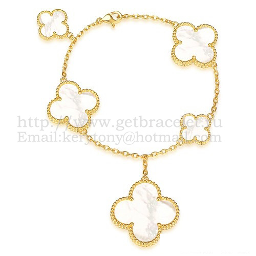 Náramek Van Cleef Arpels Magic Alhambra s 5 motivy ze žlutého zlata s bílou perletí