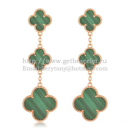 Náušnice Van Cleef Arpels Magic Alhambra se 3 motivy z růžového zlata s malachitem